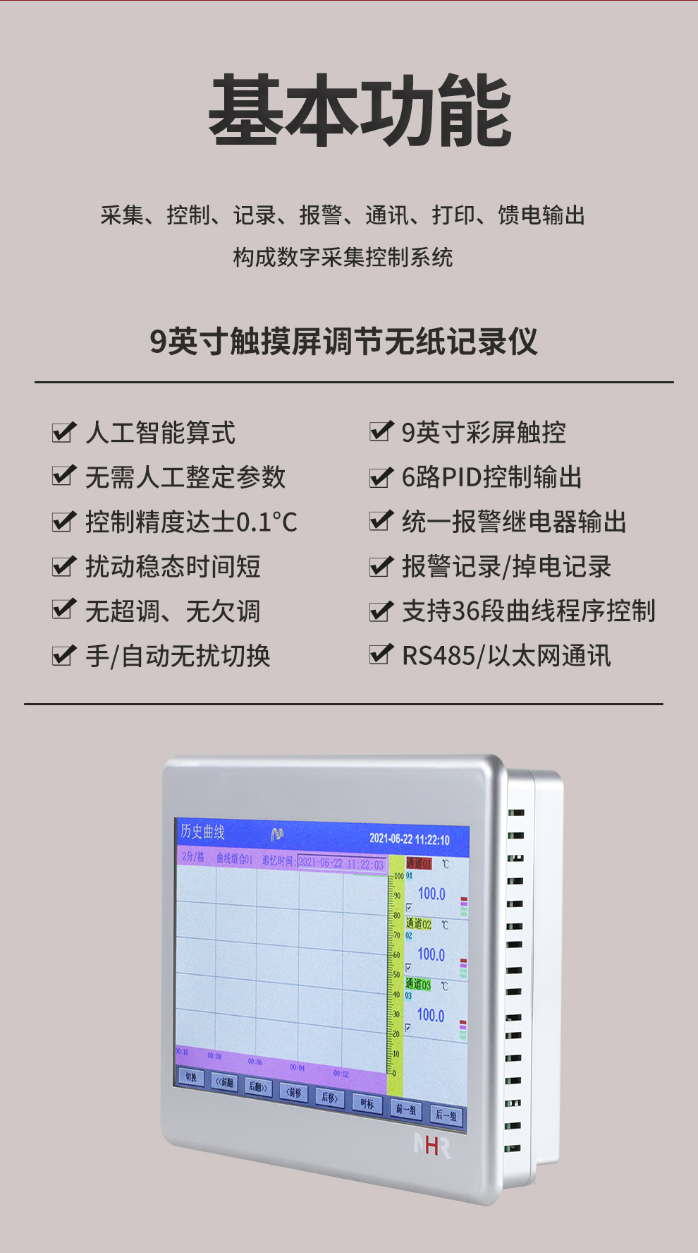 虹潤公司是專業(yè)生產(chǎn)無紙記錄儀的國家專精特新“小巨人”企業(yè)。生產(chǎn)的觸摸屏調(diào)節(jié)無紙記錄儀,具有觸摸大屏顯示,真正人工智能算式,無需人工整定參數(shù),控制精度達(dá)士0.1°C,數(shù)據(jù)記錄與轉(zhuǎn)存, RS485/以太網(wǎng)通訊,5/7/9英寸可選等特點(diǎn)。產(chǎn)品獲得智能化控制器、人工智能調(diào)節(jié)器及調(diào)節(jié)方法、模糊PID控制儀及控制方法、平板無紙記錄儀、巡回檢測顯示方法及裝置等5項(xiàng)國家發(fā)明專利,主持起草物聯(lián)網(wǎng)智能記錄儀表通用技術(shù)條件、物聯(lián)網(wǎng)智能溫度儀表通用技術(shù)條件、工業(yè)過程測量和控制系統(tǒng)用智能調(diào)節(jié)器等3項(xiàng)國家標(biāo)準(zhǔn),通信系統(tǒng)多通道數(shù)據(jù)采集控制終端規(guī)范軍用標(biāo)準(zhǔn),以及空間數(shù)據(jù)與信息數(shù)據(jù)傳輸系統(tǒng)等2項(xiàng)航天標(biāo)準(zhǔn),參與國際5G標(biāo)準(zhǔn)制定,取得觸摸屏彩色調(diào)節(jié)無紙記錄儀等3項(xiàng)相關(guān)軟件著作權(quán)。產(chǎn)品廣泛應(yīng)用于電力、石化、冶金、化工、食品、制藥、熱處理、水處理、機(jī)械配套等諸多領(lǐng)域。