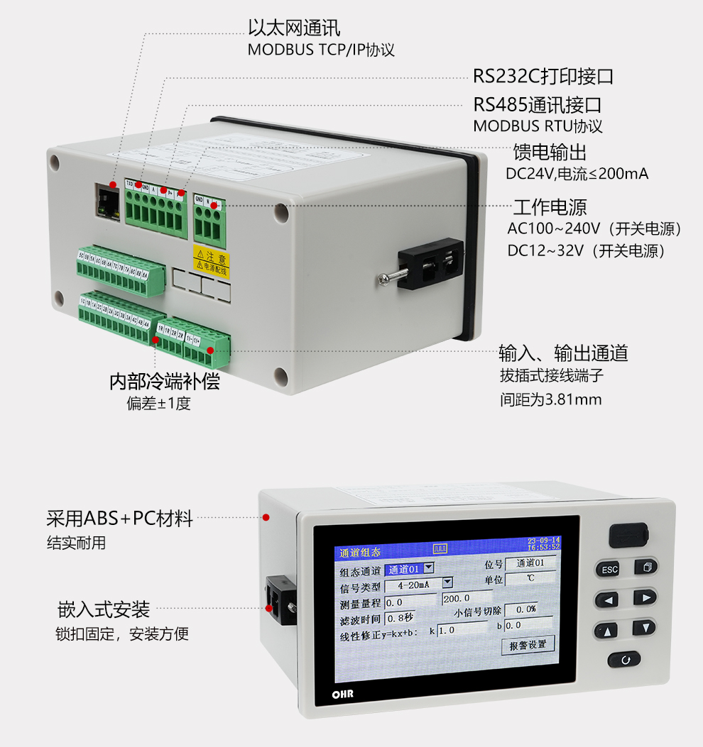 OHR-G100T系列彩色無(wú)紙記錄儀