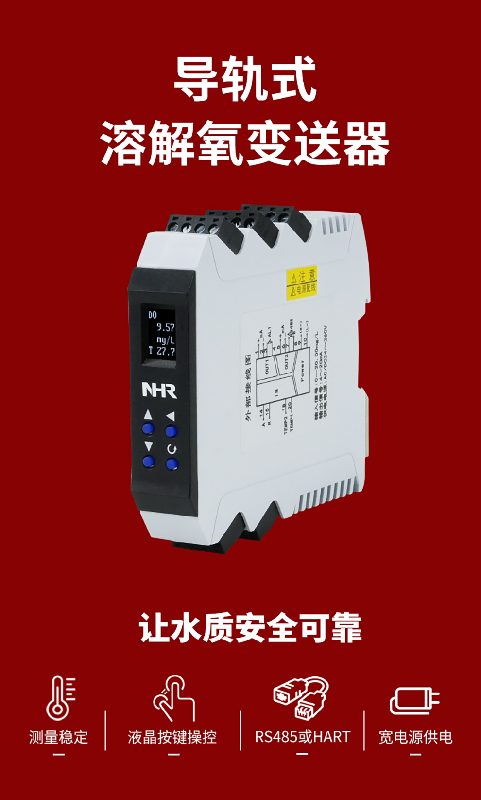 虹潤公司是專業(yè)生產(chǎn)水質(zhì)分析儀的國家專精特新“小巨人”企業(yè)。生產(chǎn)的導(dǎo)軌式溶解氧變送器,具有測量穩(wěn)定不跳字,液晶按鍵操控,變送輸出精準(zhǔn),寬范圍電源供電,RS485或HART通訊等特點(diǎn)。產(chǎn)品獲得一種高精度在線溶解氧測量儀表、智能化控制器、一種信號發(fā)生裝置等3項(xiàng)國家發(fā)明專利;主持起草現(xiàn)場設(shè)備集成等5項(xiàng)智能制造國家標(biāo)準(zhǔn),以及現(xiàn)場設(shè)備工具(FDT)接口規(guī)范、工業(yè)過程控制系統(tǒng)用模擬輸入兩位或多位輸出儀表、過程分析技術(shù)系統(tǒng)等3項(xiàng)國家標(biāo)準(zhǔn);參與國際5G標(biāo)準(zhǔn)制定,取得導(dǎo)軌溶解氧變送器等3項(xiàng)相關(guān)軟件著作權(quán)。產(chǎn)品廣泛應(yīng)用于實(shí)驗(yàn)室、水處理、環(huán)境監(jiān)測、制藥、食品、農(nóng)業(yè)、工業(yè)流程控制等諸多領(lǐng)域。